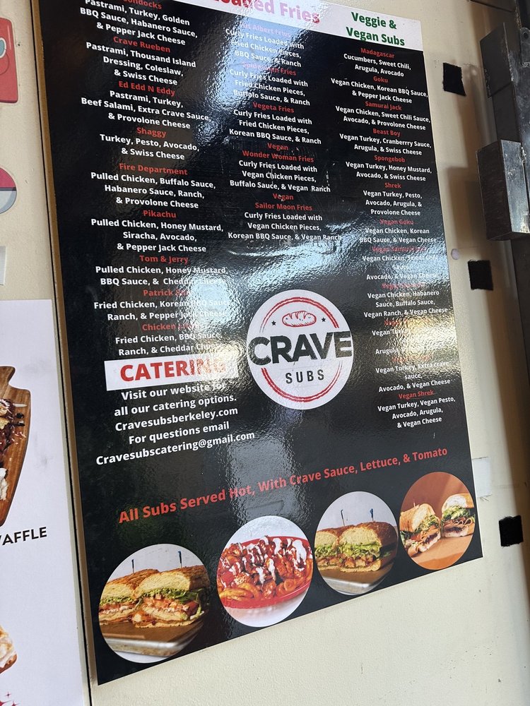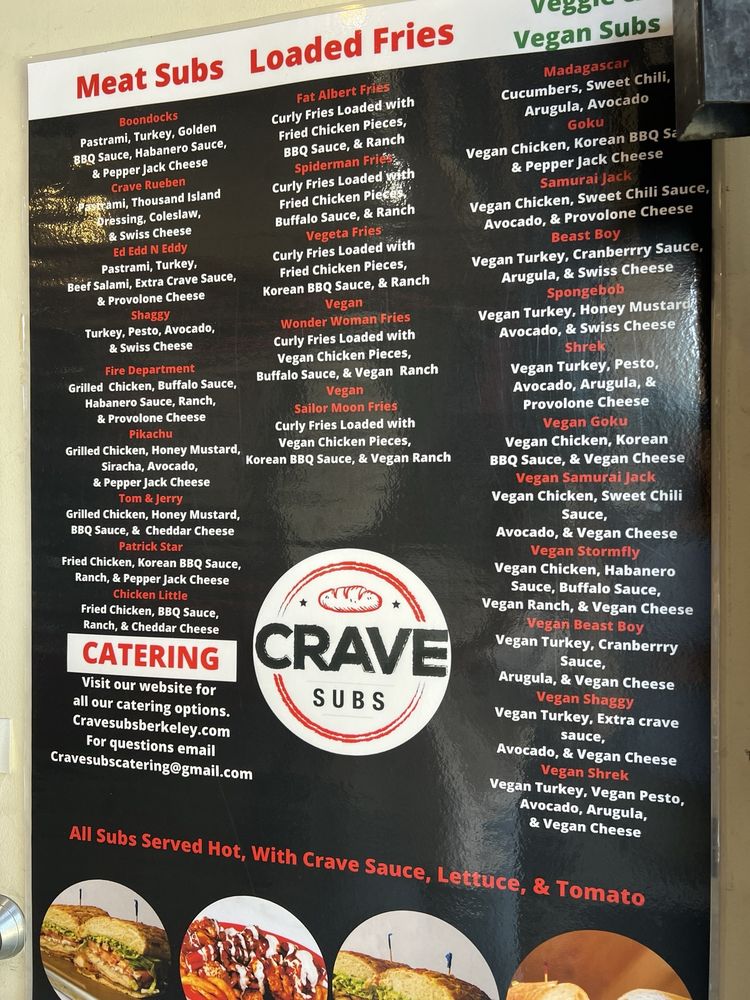 Crave Subs is a trendy, halal sandwich spot located in Berkeley, CA. They offer a variety of meat, veggie, and vegan subs packed with unique flavors. Customer reviews rave about the generous portion sizes, flavorful fillings, and themed decor that adds to the dining experience. The menu features must-try options like the Barney Roasted Turkey sub and the Beast Boy vegan sandwich. While some reviewers mention the prices being slightly high, the overall consensus is that the quality and taste make it worth the cost. With options for delivery, takeout, and catering, Crave Subs is a great choice for groups or a casual dinner. Don't miss out on their delicious offerings and friendly service at this hip and inviting eatery.